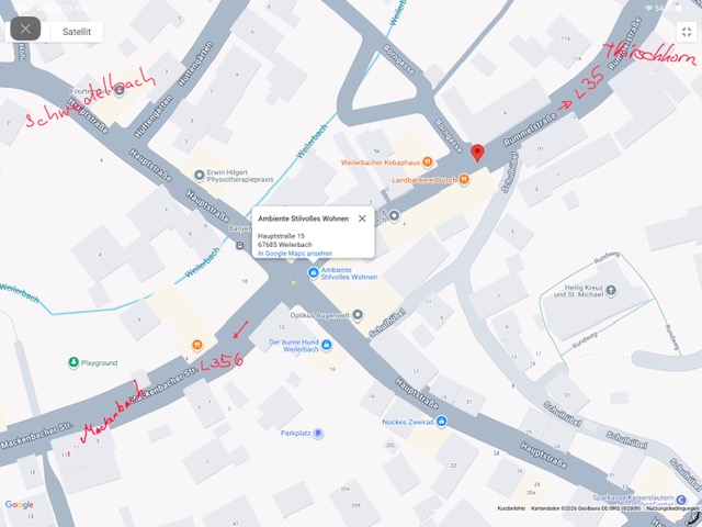 Von Kaiserslautern kommend Abfahrt Weilerbach Immel dann einfach auf der L356 bleiben bis zur Ampelkreuzung, rechts abbiegen und auf dem Parkplatz gegenüber unserem Geschäft parken.